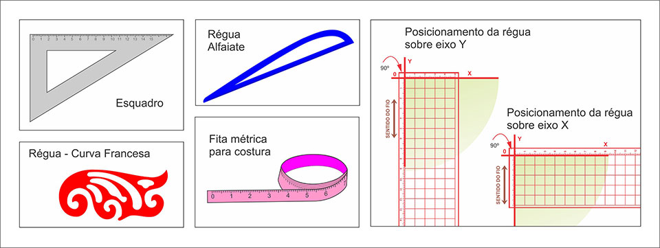 A matemática também está presente nos instrumentos de medição, na anatomia, nos tecidos, nos desenhos dos croquis, nos diagramas e moldes constituídos de linhas e formas geométricas, com referência na figura do quadrado. Na construção de suas vértices é possível identificar o plano de coordenadas cartesianas, formado pelos eixos Y e X, estrutura que permite mapear, logicamente, todas as informações necessárias para os métodos de desenhar e modelar, analógicos e digitais.