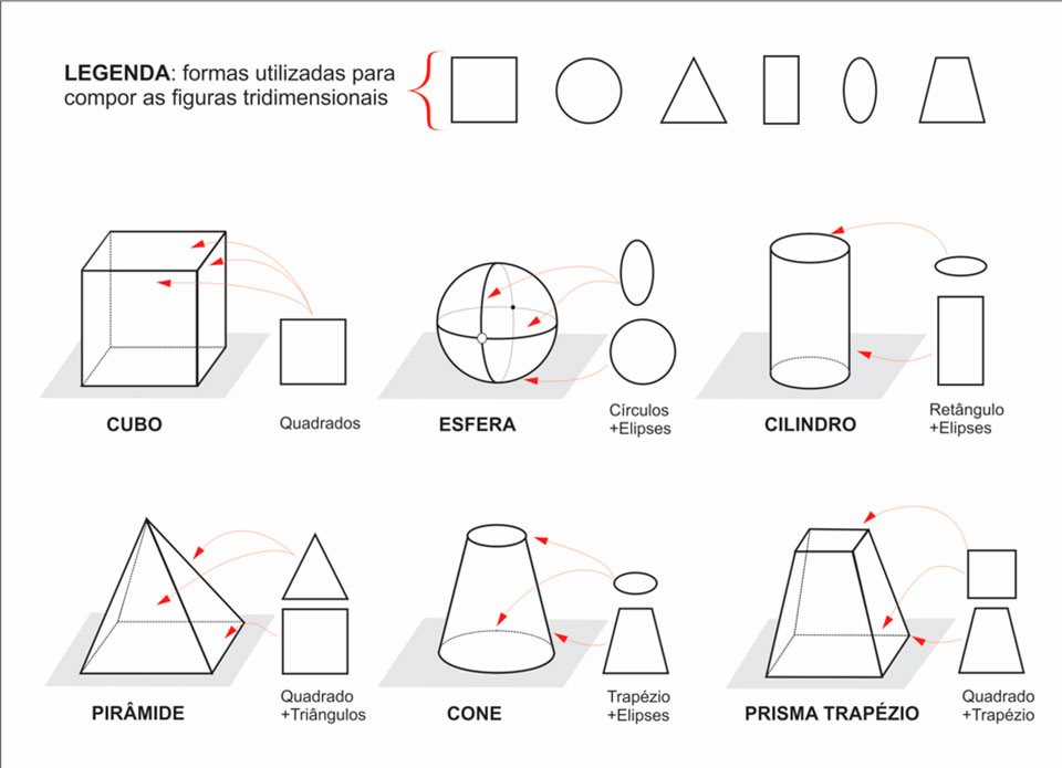 As práticas de desenho associadas aos conceitos matemáticos e geométricos potencializam a aprendizagem significativa (partem de conhecimentos estudados no ensino fundamental e médio). Tais práticas devem desenvolver habilidades para identificar as relações entre as proporções, aplicar luz e sombra para ressaltar os volumes, identificar e separar cores, texturas, materiais, a incidência de luz e sombra na silhueta, até simplificar suas formas em linhas e pontos.